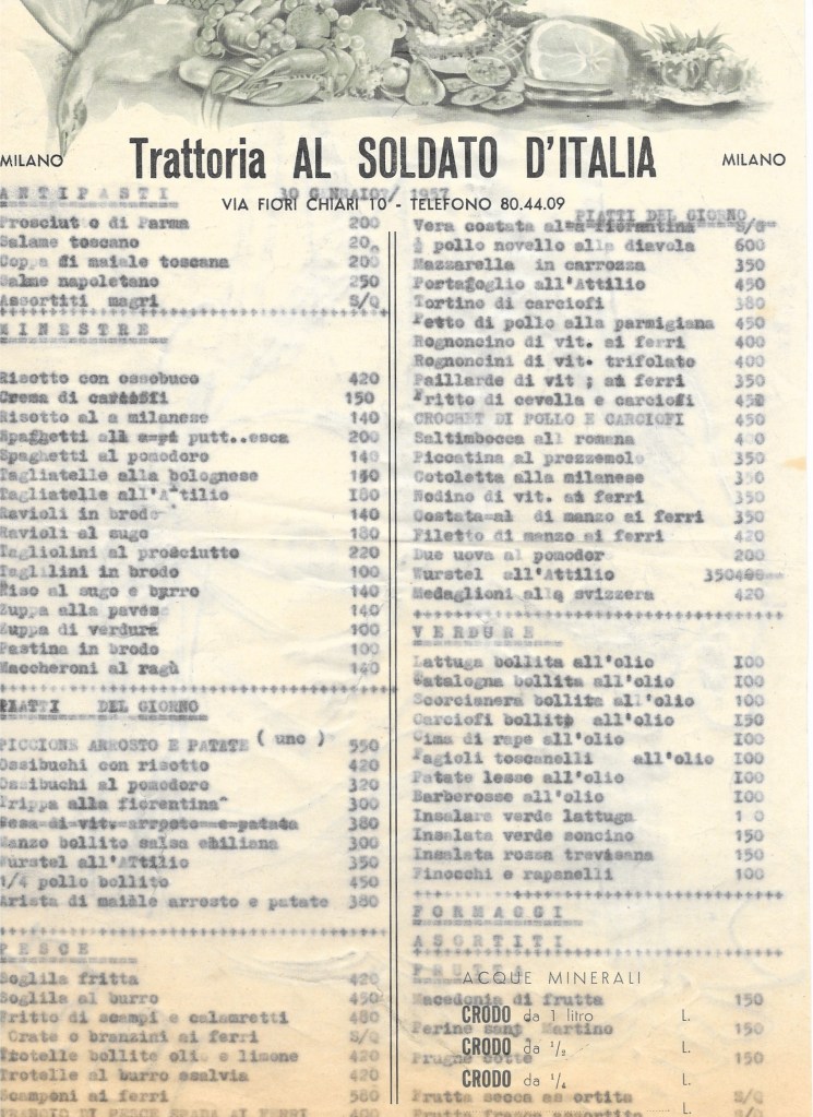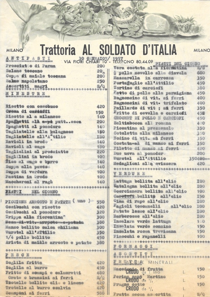 I primi disegni qui presentati sono stati realizzati sul retro dei menù della Trattoria Al Soldato d’Italia di Milano, durante pause di convivialità o momenti di ispirazione quotidiana. Sono testimonianza di come l’arte per Sirio fosse una presenza costante, capace di emergere nei contesti più semplici e spontanei.